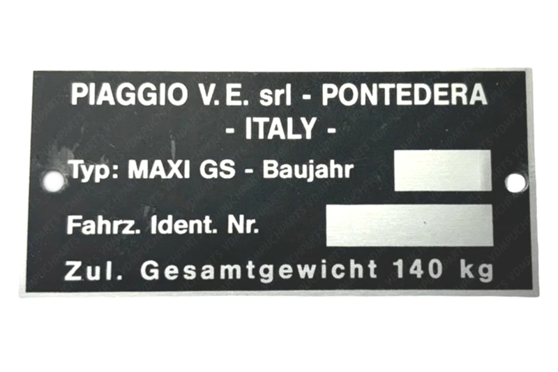 Artikelnummer: VDM-TYP1Typeplaatje Frame PIAGGIO V.E. srl - PONTEDERA - ITALY - Puch Maxi GS